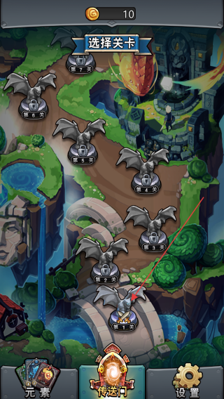 1、在关卡选择界面,可见多个关卡标识,点击未锁定的“第1关”关卡标识,这是开启第1关游戏的必要操作,为进入战斗做好准备。