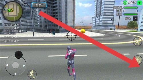 1、点击左下角跑步图标,操控角色加速移动,在城市场景中快速行动,按任务提示寻找目标。