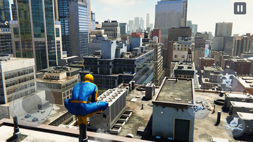 2、简易操作与自由穿梭:通过简单操作即可掌握蜘蛛侠的移动与战斗,滑动方向盘即可在开放世界中自由移动,利用绳索实现高楼间的快速穿梭。