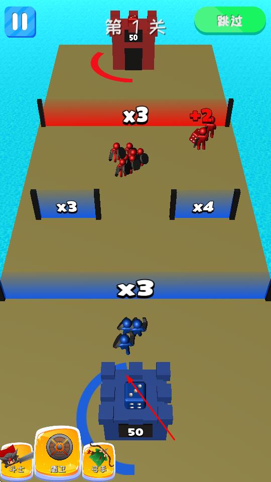 1、骰子投掷与军团组建:玩家通过点击屏幕投掷骰子,根据骰子显示的结果获得相应的火柴人士兵,每次投掷后,玩家可以选择将士兵放置在战场的左侧或右侧。