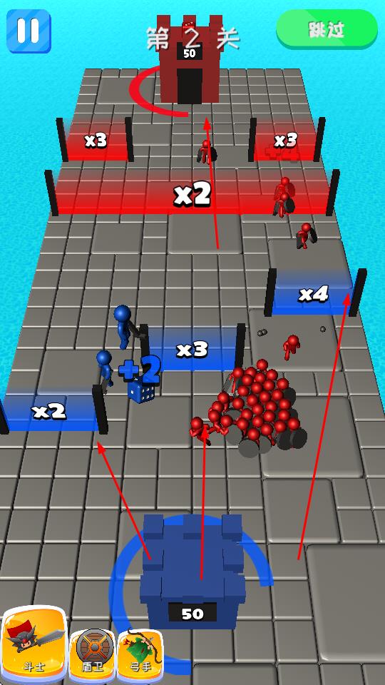 2、物理碰撞与障碍突破:融入了物理碰撞机制,火柴人军团需要通过合理的碰撞角度和力度来突破障碍物,利用弓箭手的远程攻击摧毁空中障碍。