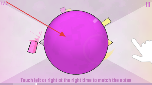 3、游戏中,按照【Touch left or right at the right time to match the notes】提示,适时点击左右侧来匹配音符,推进游戏进程。