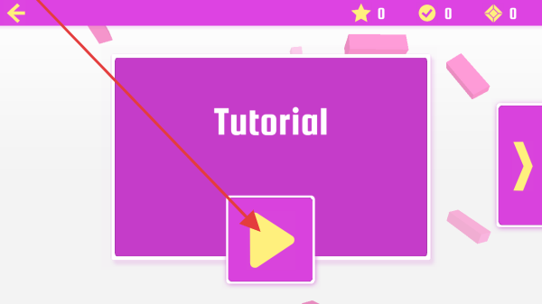 2、出现“Tutorial”界面时,点击其中的黄色播放按钮,查看教程,学习游戏的基本操作和玩法规则。