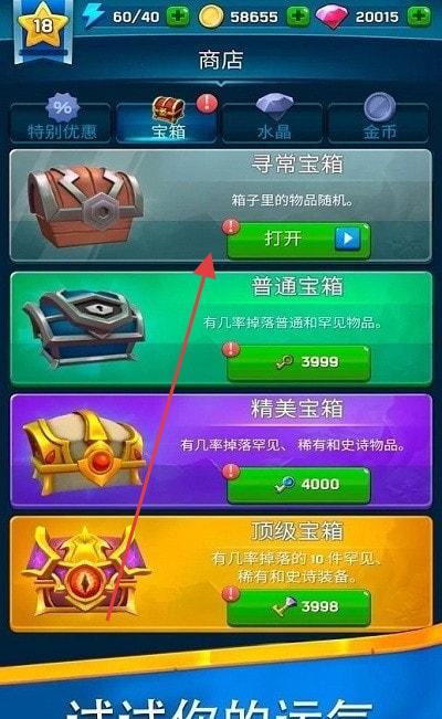2、进入商店界面,可选择【寻常宝箱】等宝箱,点击【打开】有机会获取随机物品,助力游戏进程。