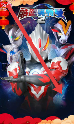 1、进入酷跑奥特曼2游戏界面,点击开始相关操作(箭头指向区域),选择奥特曼角色开启跑酷冒险。