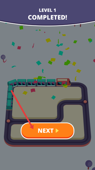 3、当成功收集到规定数量(如29个)的车厢,完成当前关卡后,点击【NEXT】按钮,进入下一关。