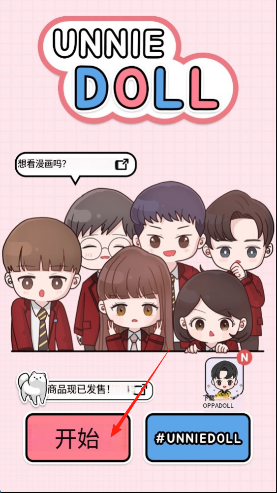 1、在玩具萌娃启动界面,点击“开始”按钮,进入角色装扮初始界面。