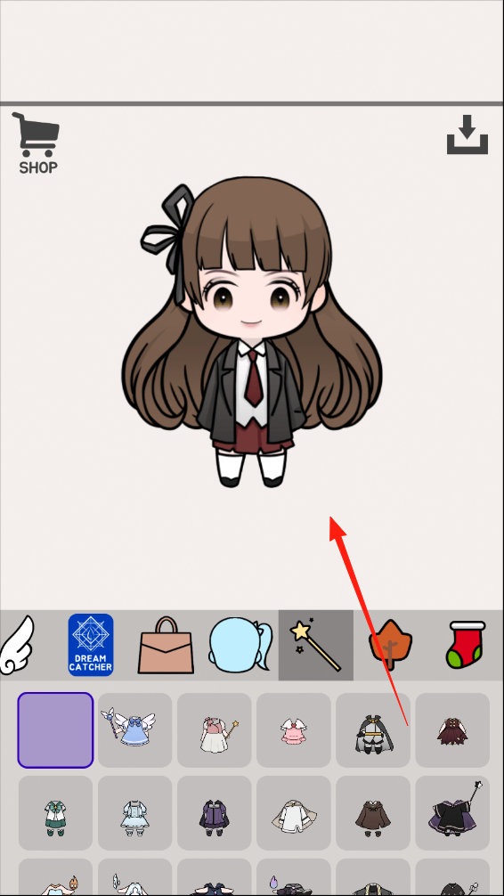 3、继续在素材栏挑选发型,服饰等部件,逐步完成角色的个性化装扮。