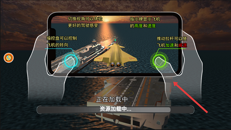 3、左手操控飞机转向右手推杆加速起飞和降落,建议截图保留。