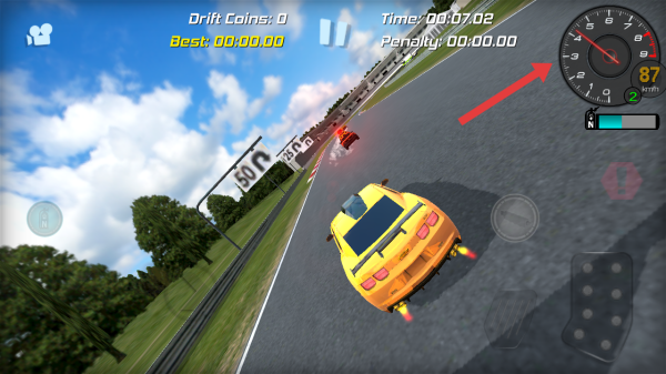 3、在赛车的时候,需要关注速度表,操控车辆赛道行驶,留意时间、漂移金币等,完成比赛任务。