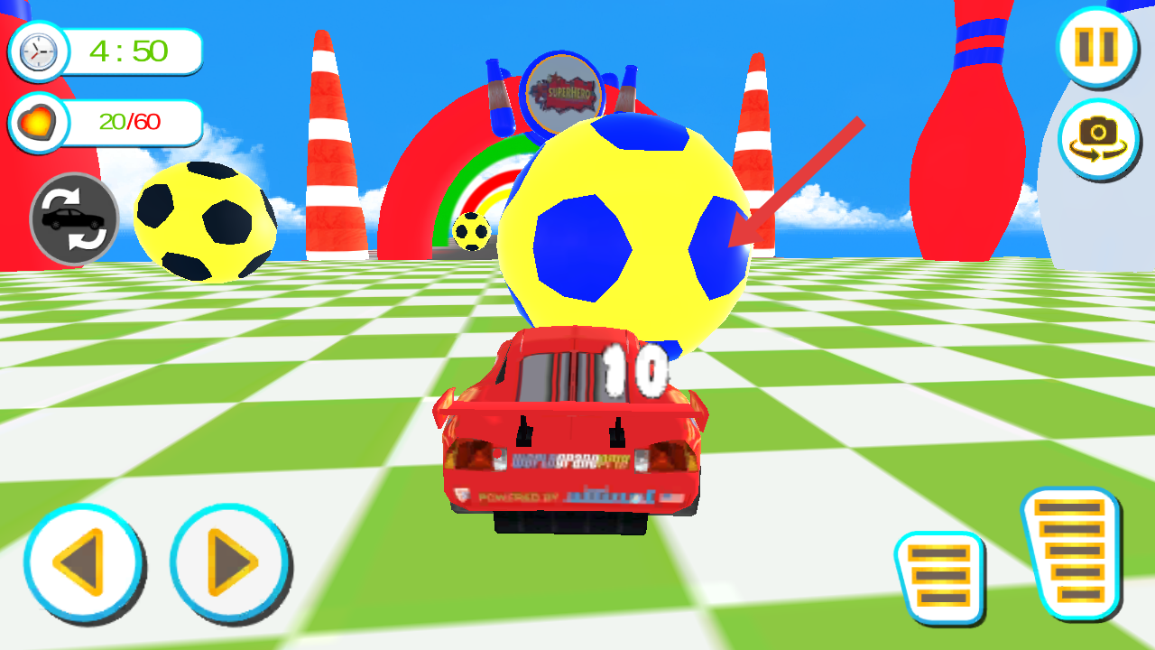 2、在游戏中操控赛车,推动前方的大球,利用左右方向键调整赛车位置,确保顺利推动球前进。