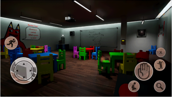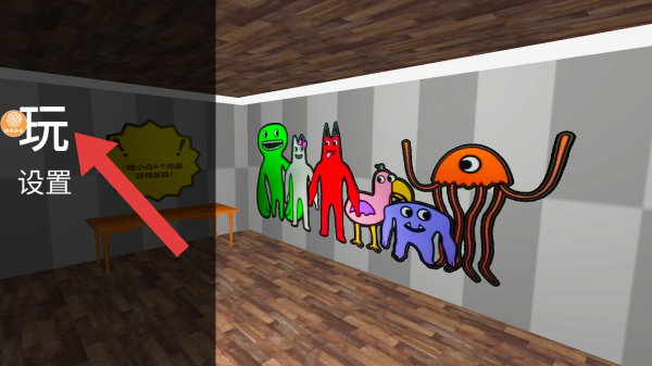 1、呈现卡通风格的室内场景,场景设计充满童趣与冒险氛围,玩家可通过点击【玩】进入游戏,体验与这些卡通角色相关的互动内容。
