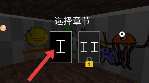 2、这是游戏的章节选择界面,玩家需先完成第一章解锁后续内容,界面设计引导选择章节开始,体现分章节推进的机制。