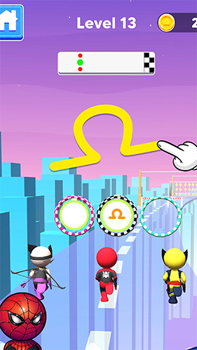画条路快跑是一款魔性休闲的跑酷益智手游,玩家通过手指绘制角色的腿部造型,帮助橡皮人跨越障碍、加速冲刺,在简约画风的关卡中挑战生存时长与通关速度,凭借创意绘图与敏捷反应解锁趣味奖励,体验“一笔画腿,脑洞跑酷”的独特乐趣,遇到连续障碍可画“弹簧腿”弹跳,绘图越合理,跑酷效率越高。