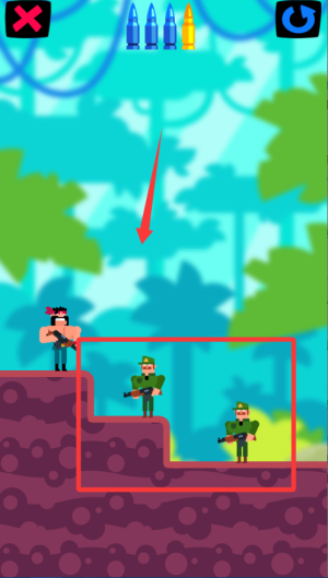 2、注意观察地形,寻找高低差和障碍物躲避敌人攻击。部分关卡需要触发机关才能通关,射击红色按钮或炸药桶。