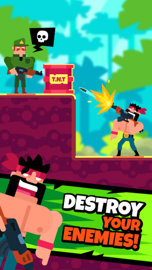 GunGuys带来畅快的卡通射击冒险,采用鲜明美漫风格打造视觉体验。80个精心设计的关卡充满挑战,需要巧妙运用武器与地形特性。通过精准射击、子弹反弹等技巧消灭敌人,体验快节奏的竖屏战斗乐趣。游戏操作简单易上手,但策略性强,适合喜欢休闲闯关的射击爱好者。多样化的场景与敌人组合让每场战斗都充满新鲜感。
