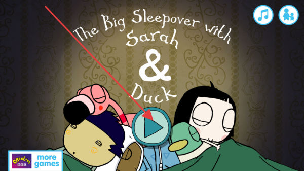 2、看到【The Big Sleepover with Sarah&Duck】标题,点击中间播放按钮,进入游戏主界面,开始过夜冒险。