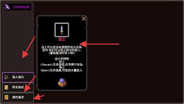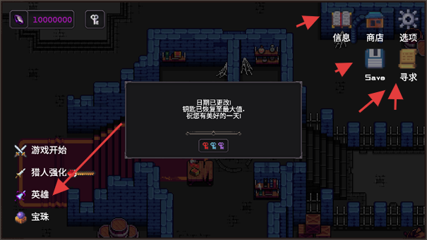 1、玩家可通过“猎人强化”提升角色能力,还能在“英雄”界面了解不同职业特点,选择和培养英雄,增强角色战斗实力。