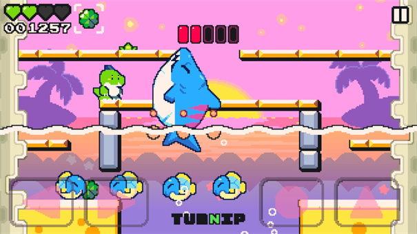 2、游戏中存在鲨鱼、猴子、黄色怪物等敌人,玩家需操控小恐龙通过跳跃、攻击等方式击败敌人。