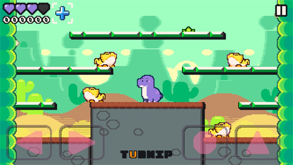 1、玩家操控小恐龙在不同场景的平台间跳跃移动,躲避障碍和敌人。