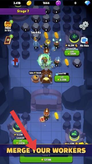 1、玩家可通过点击绿色按钮,提升效率或解锁新功能,通常通过合并升级工人,自动生产资源,逐步解锁更高等级内容,适合碎片化时间体验。