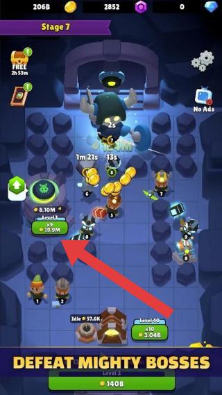 3、玩家通过积累资源升级,在关卡中挑战boss,界面卡通风格,强调关卡推进与boss挑战的成就感,符合休闲的轻量化战斗与成长体验。
