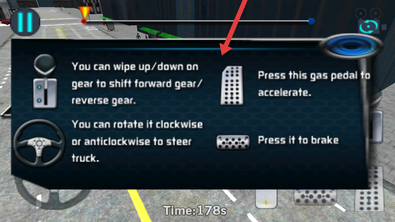2、游戏开始时查看操作提示,了解换挡、加速、刹车及转向操作方法,熟悉驾驶控制。