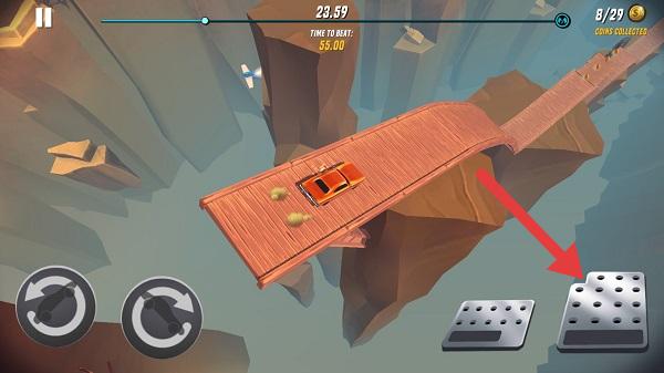 3、在规定时间内,驾驶赛车在崎岖赛道上行驶,收集金币,完成关卡任务。