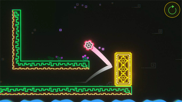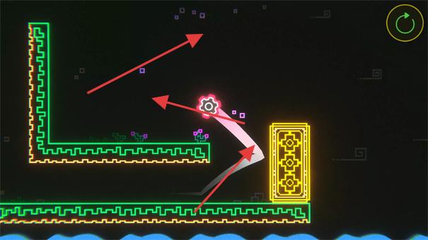 1、玩家操控齿轮状角色在霓虹风格场景中移动,躲避尖刺等障碍物,考验反应速度和操作敏捷性。