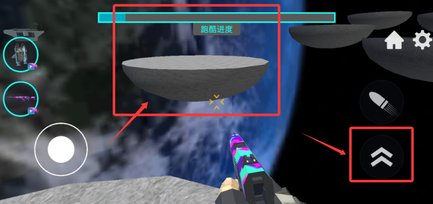 3、遇到高空台阶时轻点跳跃键跨越,长按则可实现增加跳跃距离,通过危险区域。