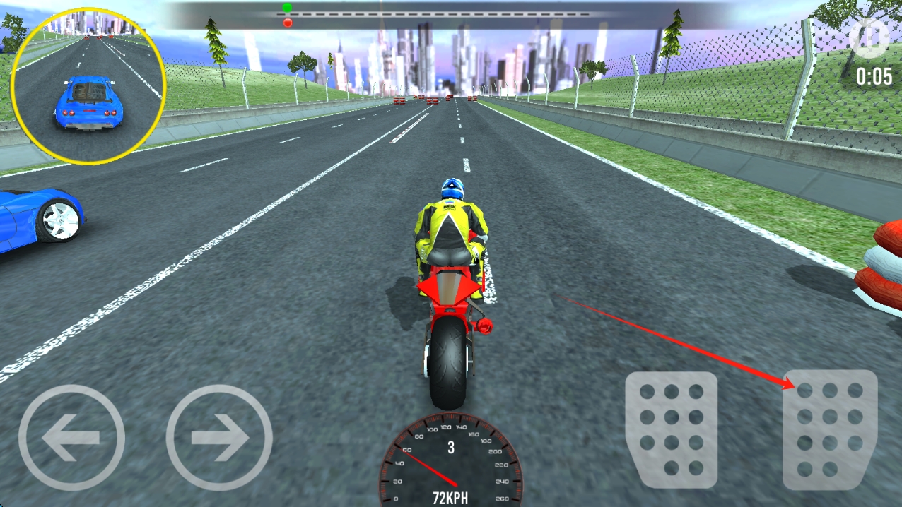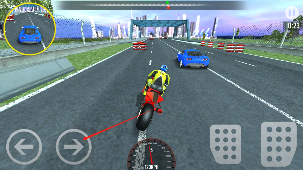 2、点击油门加速,注意收集赛事积分,可能用于兑换限定摩托车,利用每日登录奖励获取免费道具与加速升级。