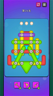 2、玩家可使用下方的工具对机械结构进行操作,通过拆卸、移动部件等方式,使机械结构达到特定状态,完成关卡目标。