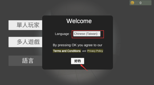 1、打开游戏后,这里会有语言选择,直接选择中文。