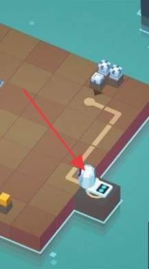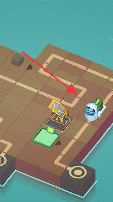 3、面对有白色设备的关卡,根据红色箭头指引,引导物体到达设备位置,合理利用场景布局完成任务。