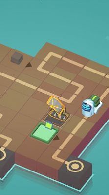 2、在棕色地块关卡,按照红色箭头方向,规划路径,将物体移动至目标设备处,留意路径上的方块和障碍物。