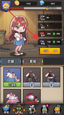 2、玩家可对角色进行养成,通过升级提升属性,还能在“武器”“套装”界面更换装备,增强角色战斗力。