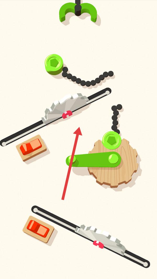 3、遇到复杂机械关卡,仔细研究红色开关、齿轮和链条的布局,合理放置绿色链条部件,触发开关使机械装置运行。