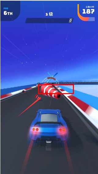 2、长按屏幕能够提升赛车速度,行驶过程中需要闪避路边的障碍。
