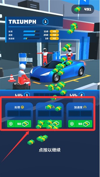 3、完成每局游戏后,可以获得奖励,能够用来给赛车升级。
