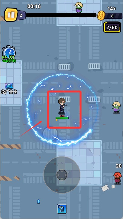 1、进入关卡后角色将自动攻击,操作者只需控制移动方向,躲避敌人攻击并寻找安全输出位置,操作轻松不失挑战。