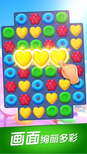 1、消除玩法独特,游戏对消除要素进行了Q萌化处理,可爱的画风与消除元素相融合,让玩家在轻松愉悦的氛围中进行游戏,增添无限趣味。