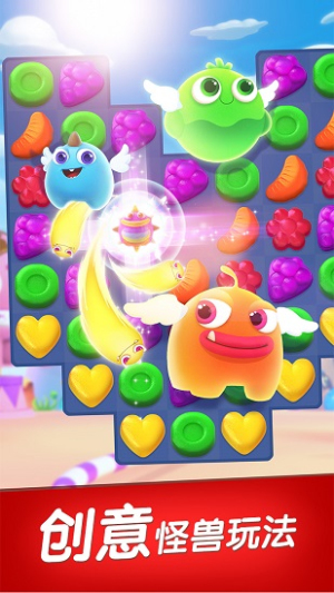 3、怪兽玩法创新,独创的怪兽辅助玩法为游戏增添新亮点。玩家可通过消除糖果为怪兽充能,这种独特的设定增加了游戏的策略性与互动性,带来新奇体验。
