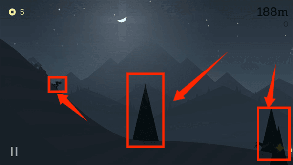 2、根据地形,操纵小人跳跃躲过障碍。