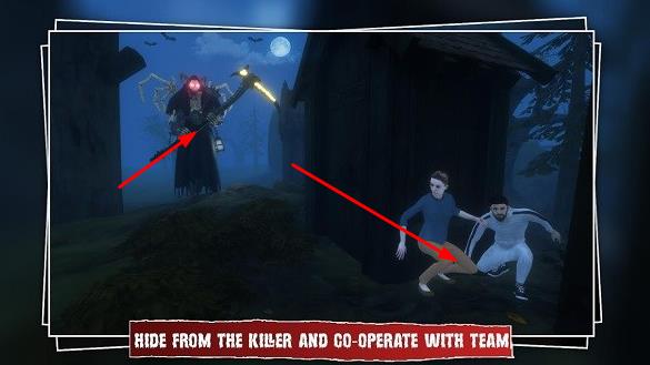 2、幸存者需与队友合作,依据“HIDE FROM THE KILLER AND CO-OPERATE WITH TEAM”提示,共同寻找藏身之处,躲避杀手追捕。