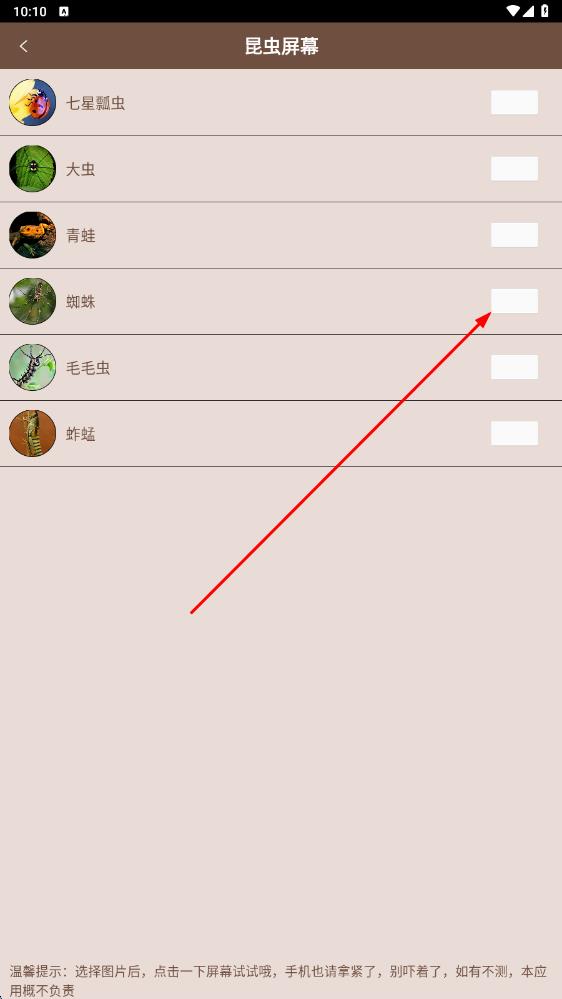 1、初次进入游戏,在主界面挑选心仪的整蛊特效,如想恶搞朋友,可点击“桌面蜘蛛”,选定后静待朋友靠近手机,适时触发特效即可。