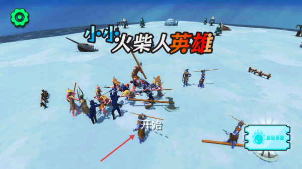 1、进入小小火柴人英雄游戏,在主界面点击开始按钮,进入战斗场景。