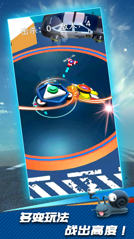 3、多模式竞技体验:“单人挑战赛”逐层突破AI守关陀螺“多人乱斗场”支持4人实时对战“团队争霸赛”需配合撞击敌方核心陀螺,不同模式考验操作与策略。