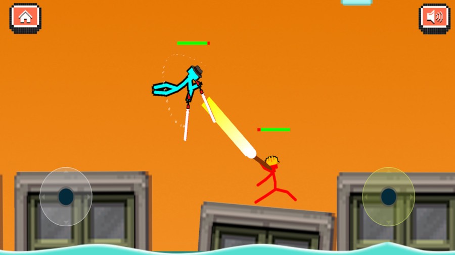 1、初入游戏,在角色选择界面挑选心仪火柴人,进入对战场景,通过虚拟摇杆灵活走位,寻找进攻时机。