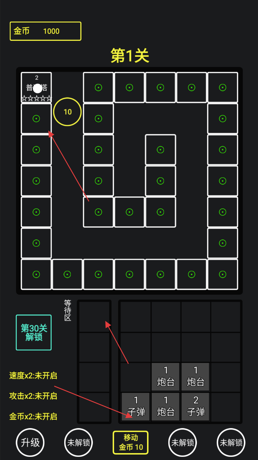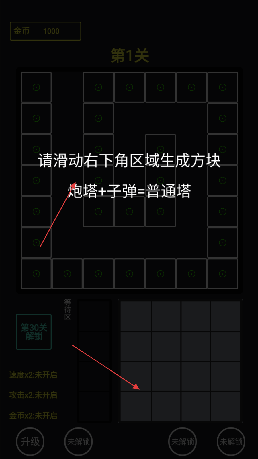 1、合成防御塔进阶:在战场空位放置初级防御塔,通过拖动两个相同塔合成更高级塔,逐步解锁射程更远、伤害更高的终极塔型增强防线。