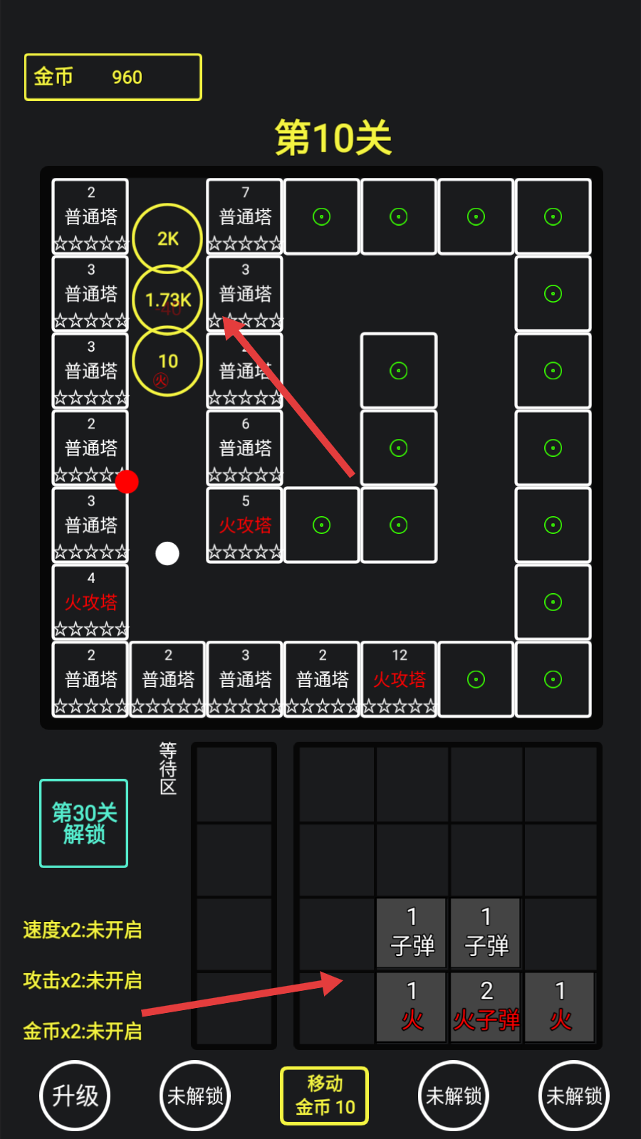 3、前期保留基础塔快速合成中级塔稳定防线,后期积累资源合成终极塔,同时注意预留空位以便在关键位置补建高级塔。